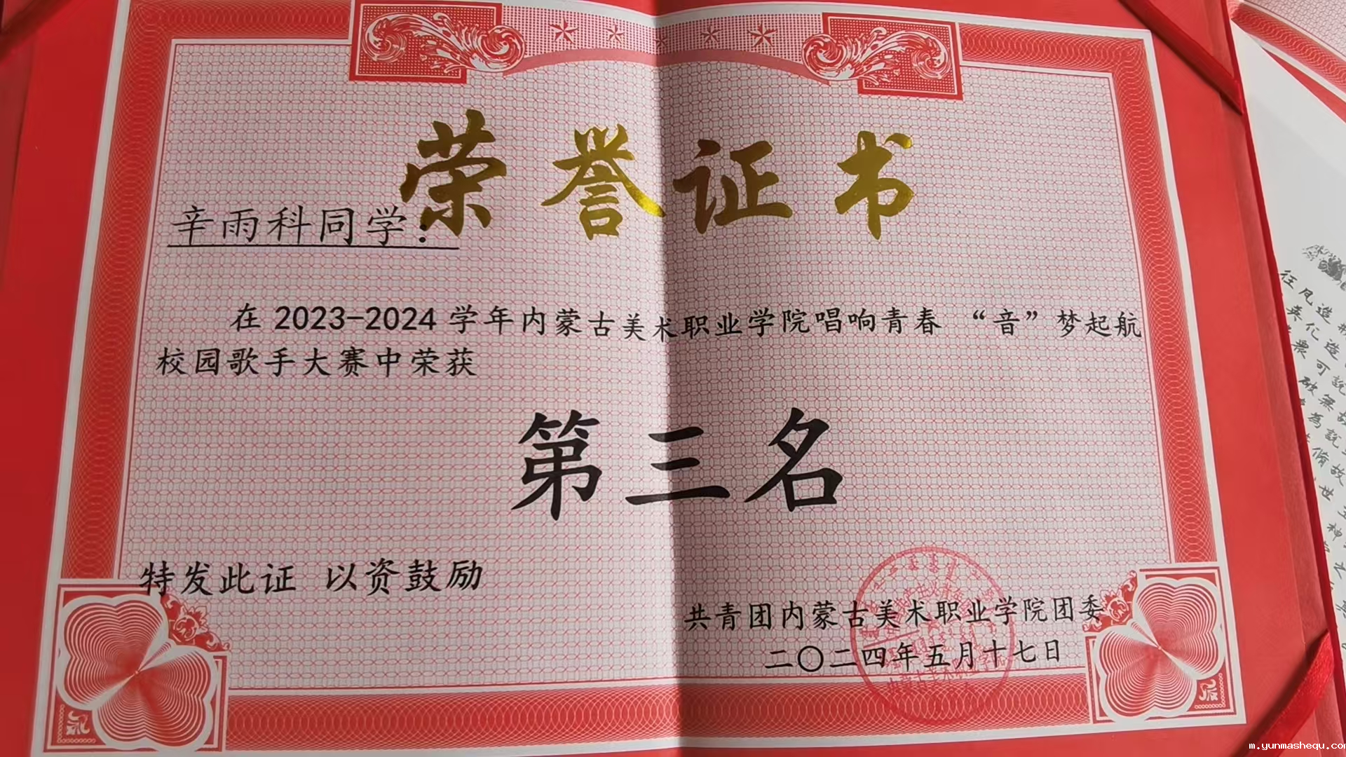 (4)辛雨科同学荣获2023-2024学年betway精装版苹果唱响青春“音”梦起航校园歌手大赛“第三名”