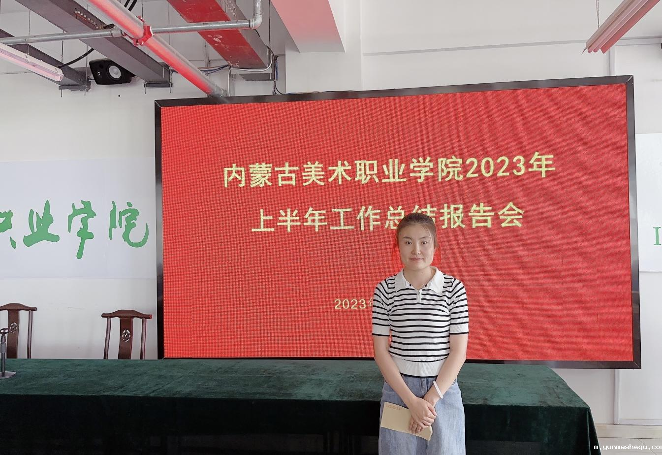 会上杜嘉丽副处长总结本学期期末学生技能展、作品展并奖评,宣读本学期学生技能大赛获奖情况并对指导教师进行奖励。