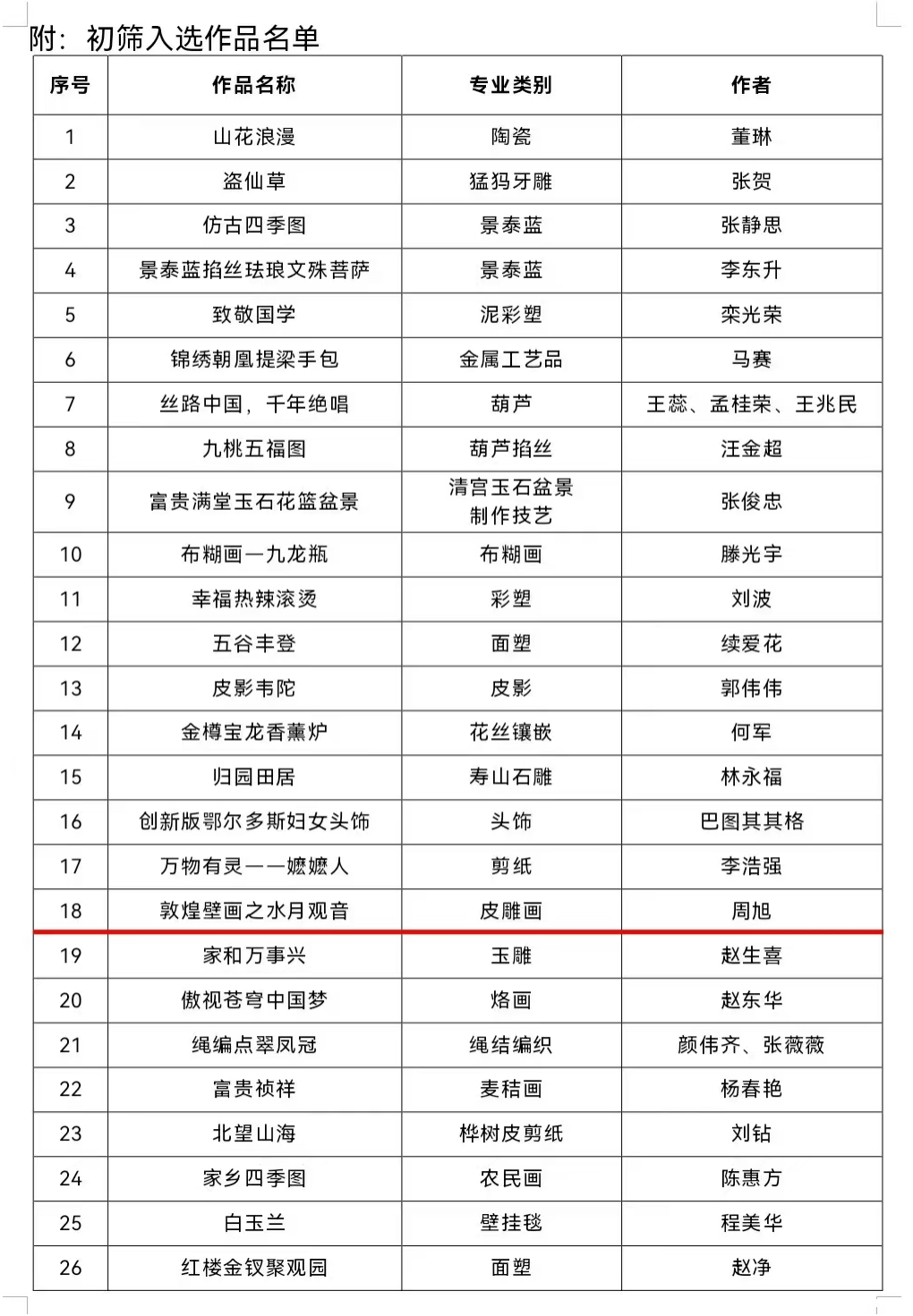 喜讯传来,我院优秀毕业生周旭入选“第十七届中国民间文艺山花奖·优秀民间工艺美术作品”初筛作品