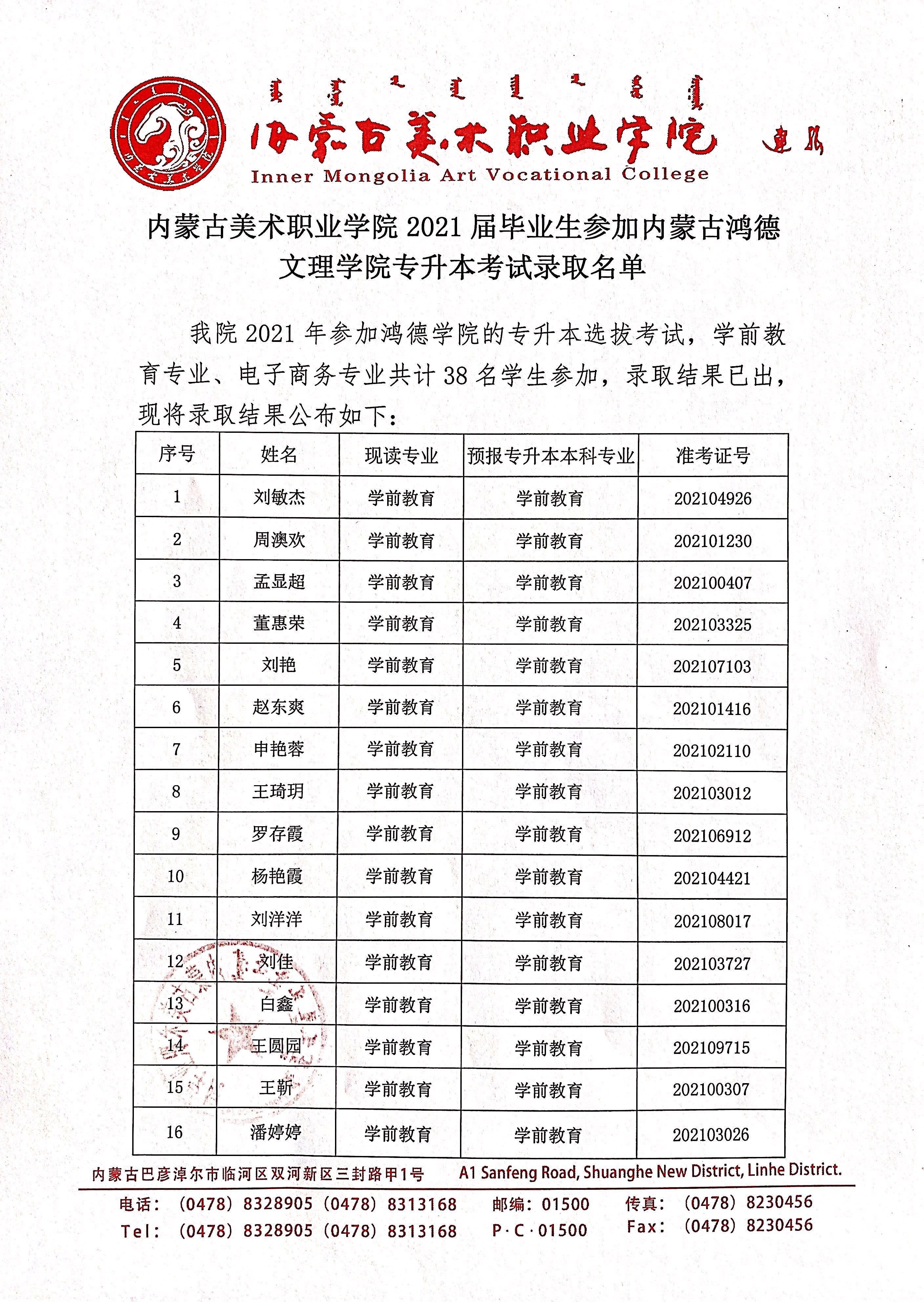 betway精装版苹果2021届毕业生参加内蒙古鸿德文理学院专升本考试录取名单
