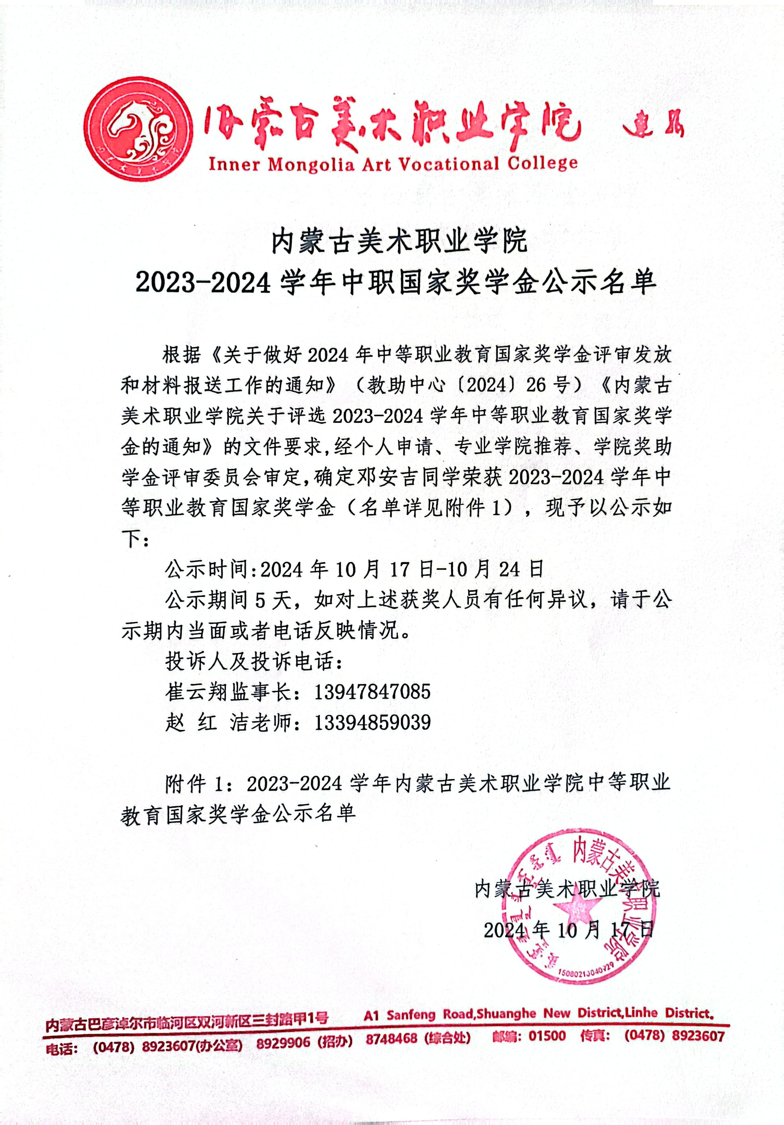 betway精装版苹果2023-2024学年中职国家奖学金公式名单